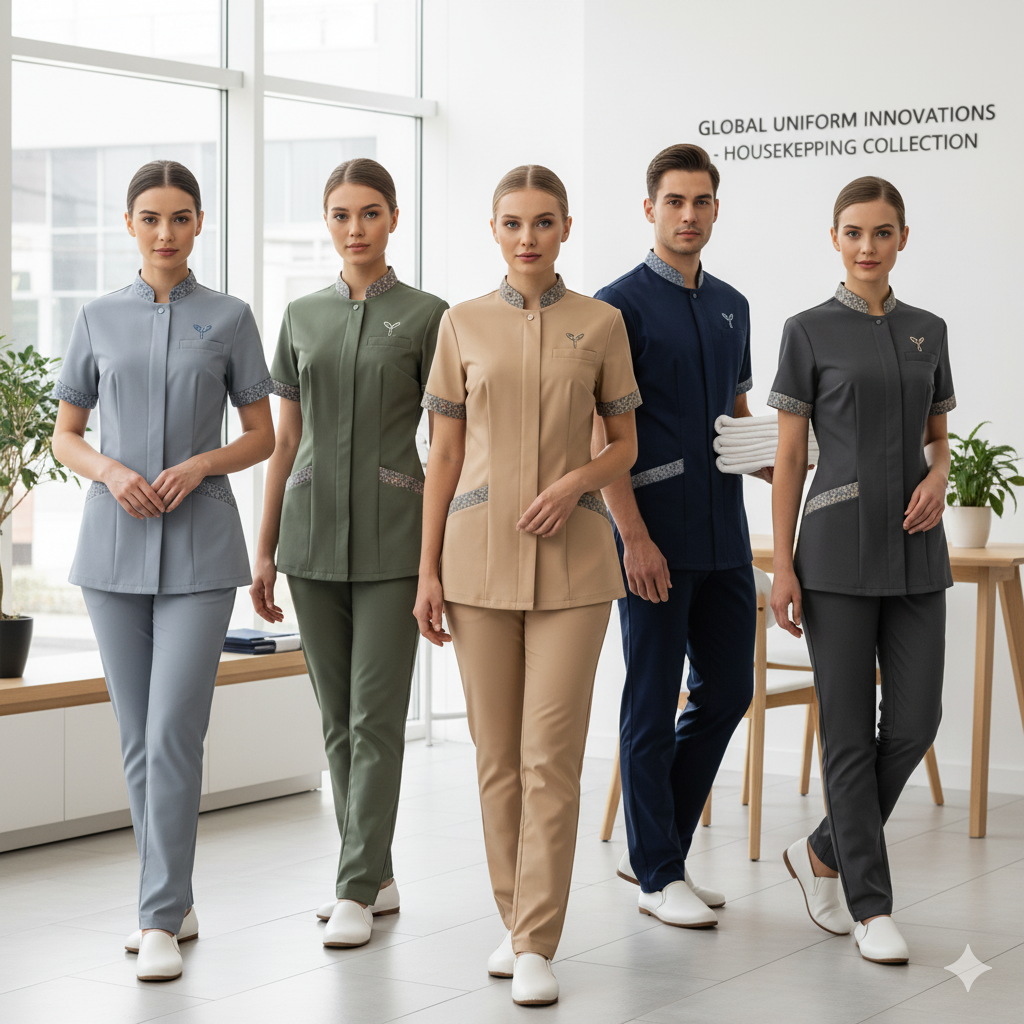 Housekeeping uniforms are designed for comfort, practicality, and a professional appearance for staff working in hotels, hospitals, corporate offices, and other facilities where cleanliness and maintenance are essential. Key characteristics often.